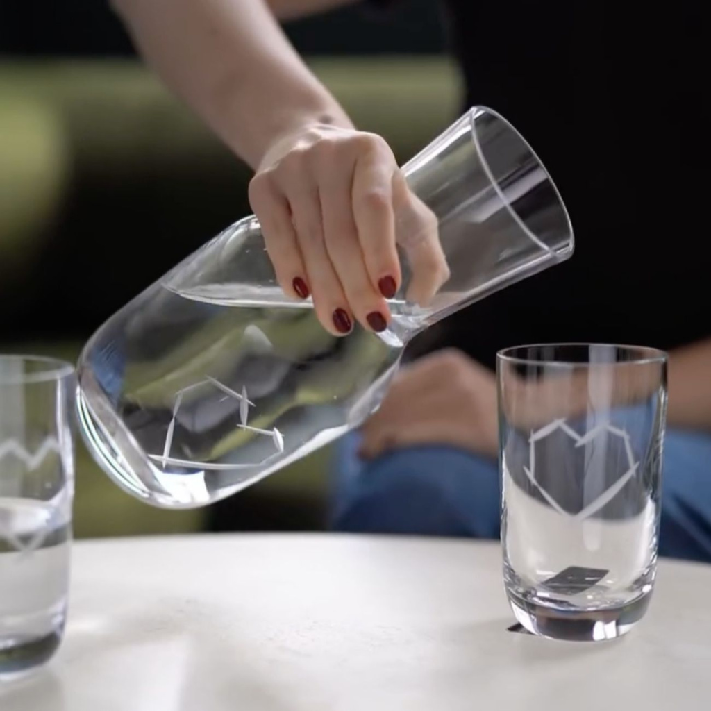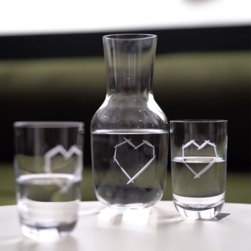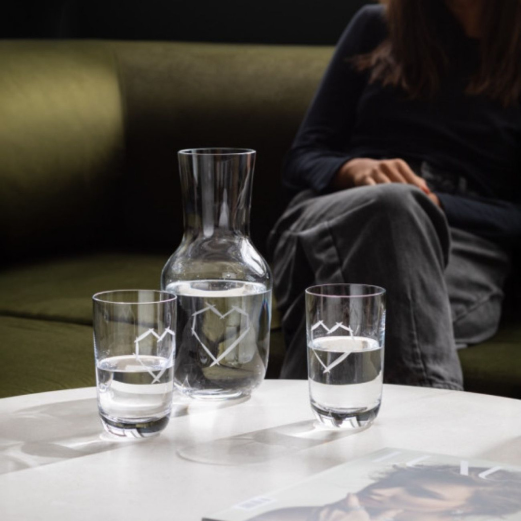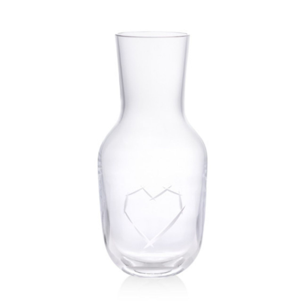 Ručně broušená karafa LOVE z kolekce Pink je dílem Ronyho Plesla pro sklárnu Rückl. Motiv srdce a nápisu „LOVE“ propojuje řemeslnou preciznost s emocemi – ideální dar i artefakt pro každodenní použití, který ozdobí stůl i vitrínu.