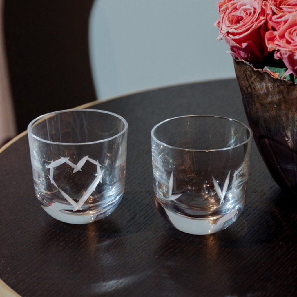 Ručně broušená sklenice LOVE z kolekce Pink je poctou lásce, eleganci a dokonalému řemeslu. Autorem návrhu je Rony Plesl, který v ní spojuje ikonickou čistotu čirého křišťálu s jemným dekorem, připomínajícím ledové kresby na skle. Symbol LOVE se objevuje jako motiv i poselství – jemné, ale nezaměnitelné.