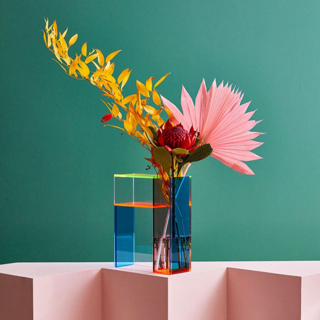 Váza obsahuje tři oddělené komory, které umožňují flexibilní aranžování – můžete ji použít jako jednu větší vázu nebo tři menší. Skvěle se hodí pro kreativní kombinace květin, různých výšek i barev. Funkčnost, barevnost i geometrie se zde spojují do jednoho neobvyklého, ale velmi praktického objektu.