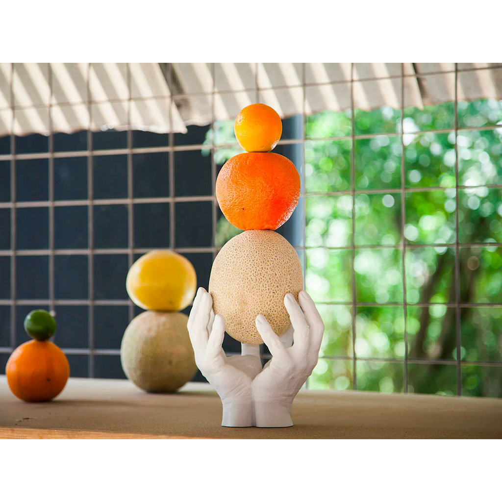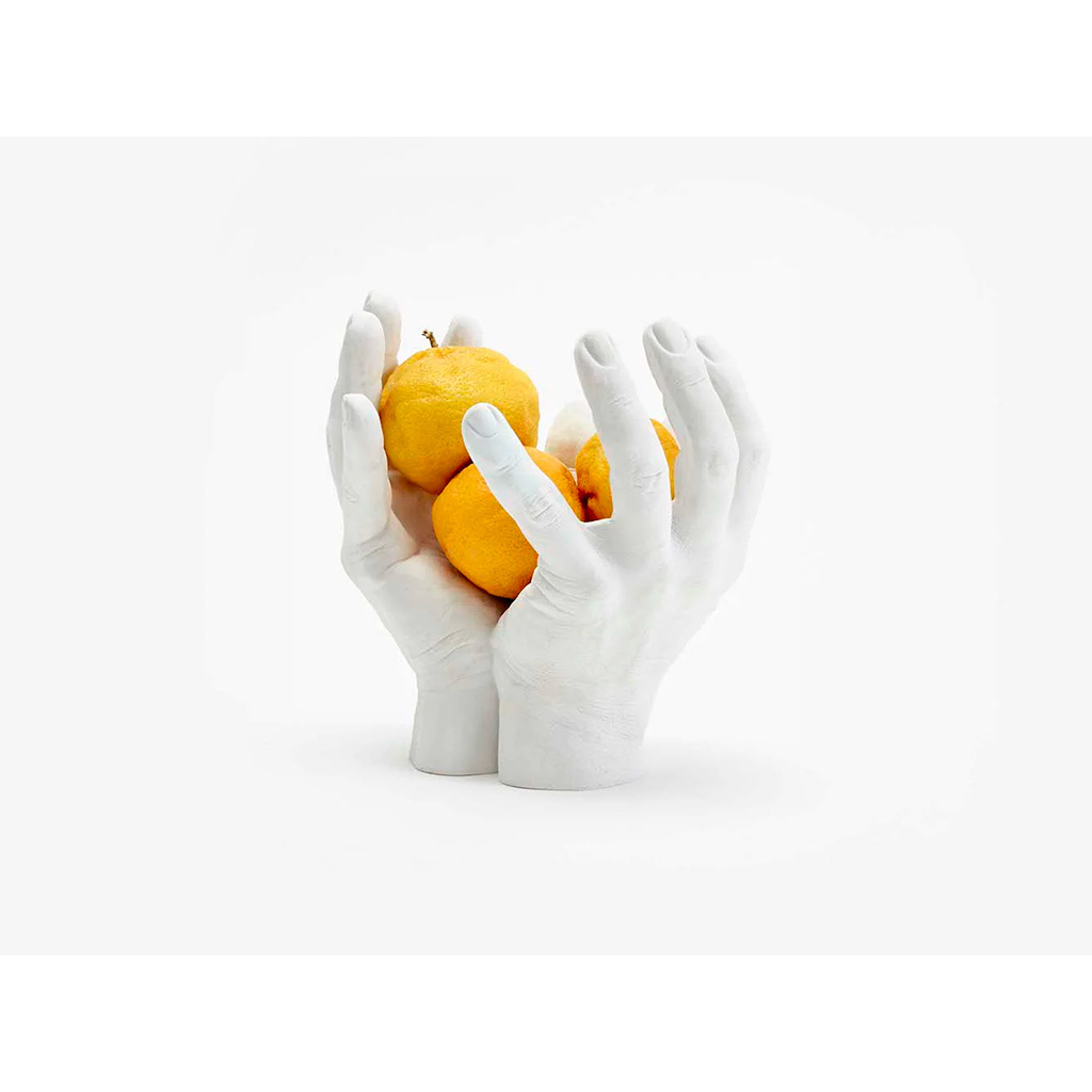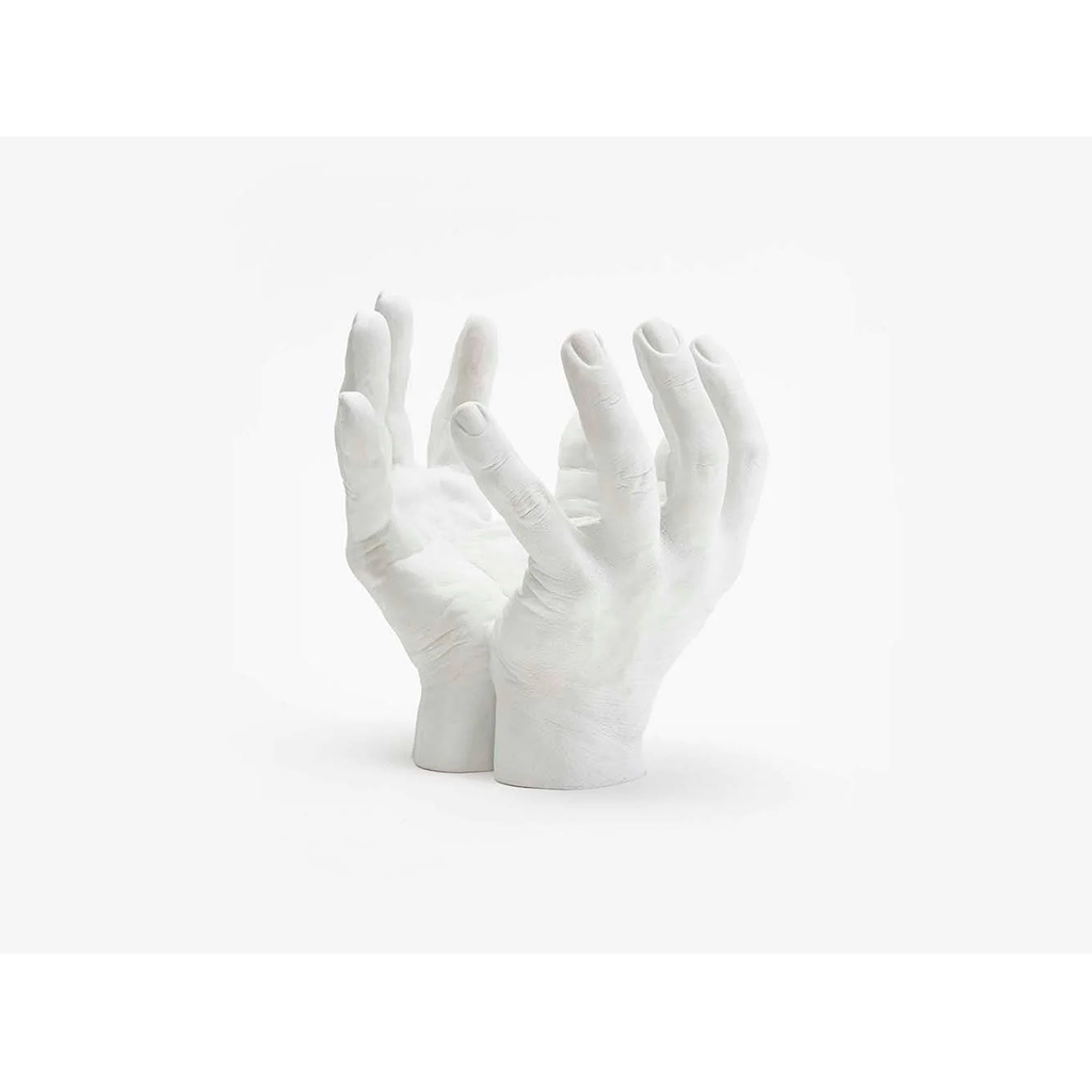 Tato designová mísa **vypadá jako skutečné ruce**, je odlita z pevné pryskyřice s mramorovým efektem a skvěle funguje jako **praktický i konverzační objekt**. Ikonický kousek, který potěší milovníky současného designu a sběratele.