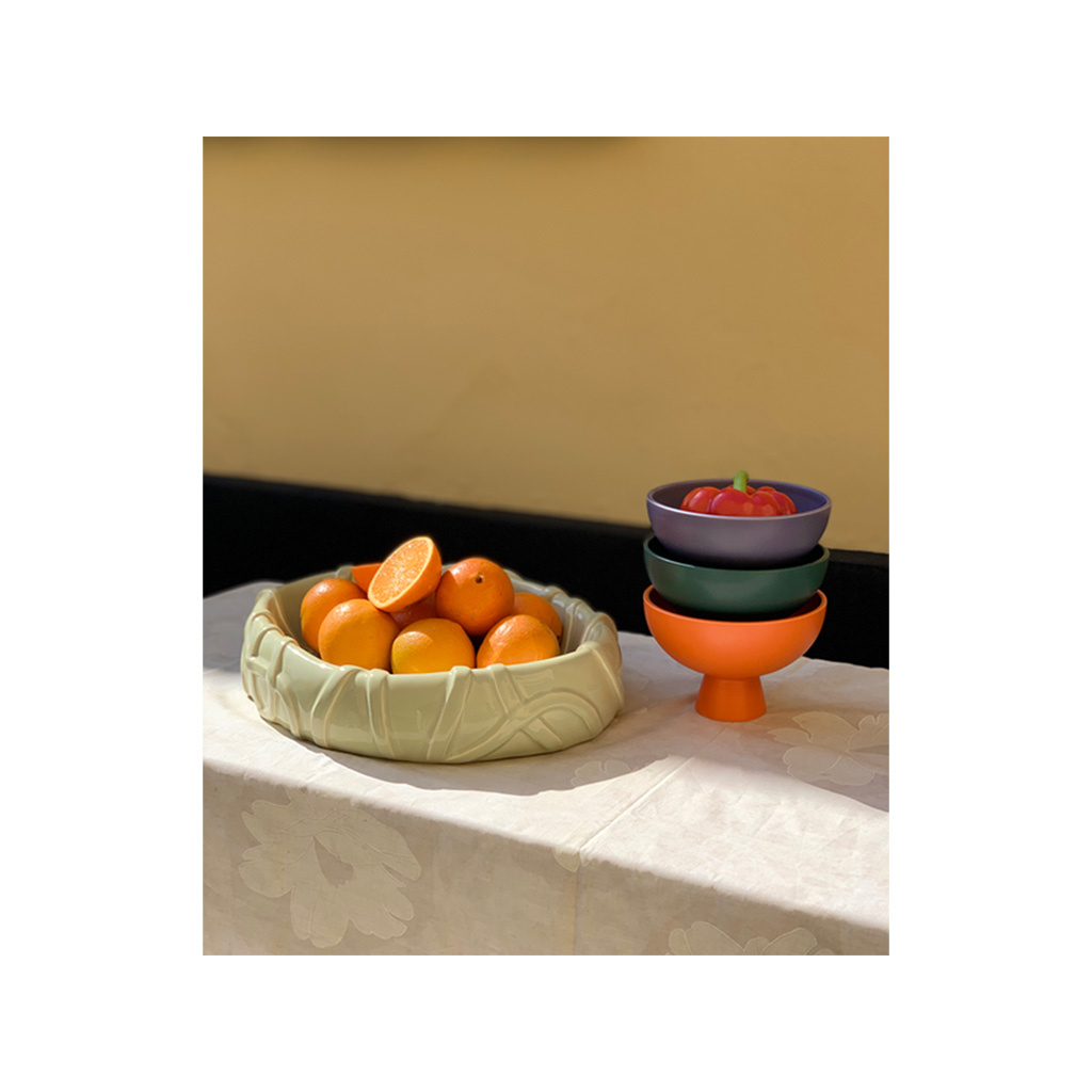 Malá miska Strøm v barvě fialového popela je součástí kolekce inspirované kubistickými tvary počátku 20. století. Kolekce vyzdvihuje geometrické zjednodušení charakteristické pro toto období a přetváří ho v funkční designové předměty každodenní potřeby. Díky své velikosti a nadčasovému tvaru se miska stane praktickým i estetickým prvkem interiéru, vhodným na stůl i jako dekorace.