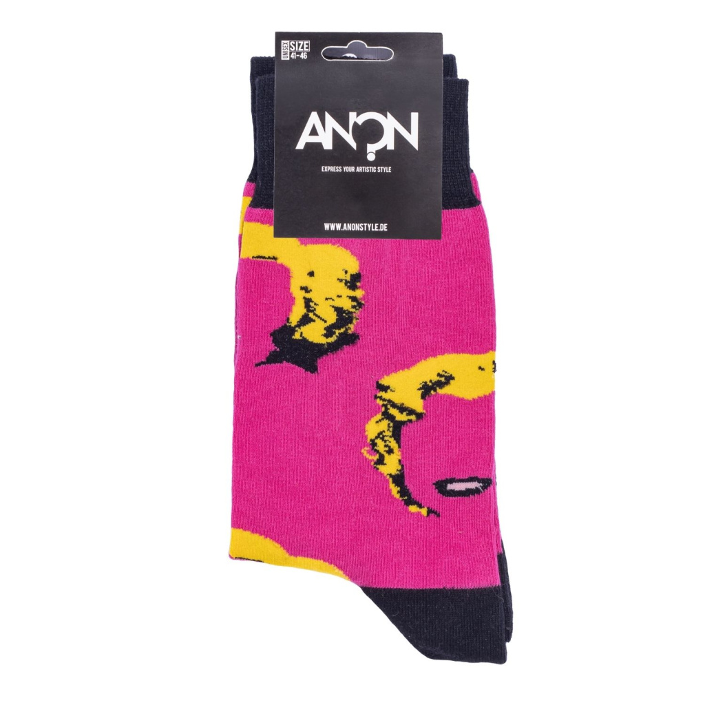 Kolekce FACTORY 1960 od značky ANON vzdává hold Andymu Warholovi, jehož dílo spojilo svět pop-artu s běžným životem a přetvořilo masovou kulturu v ikonické umění. Warholovy motivy odkazují na pomíjivost slávy, krásy a spotřeby – a přesně to odráží i design těchto ponožek.