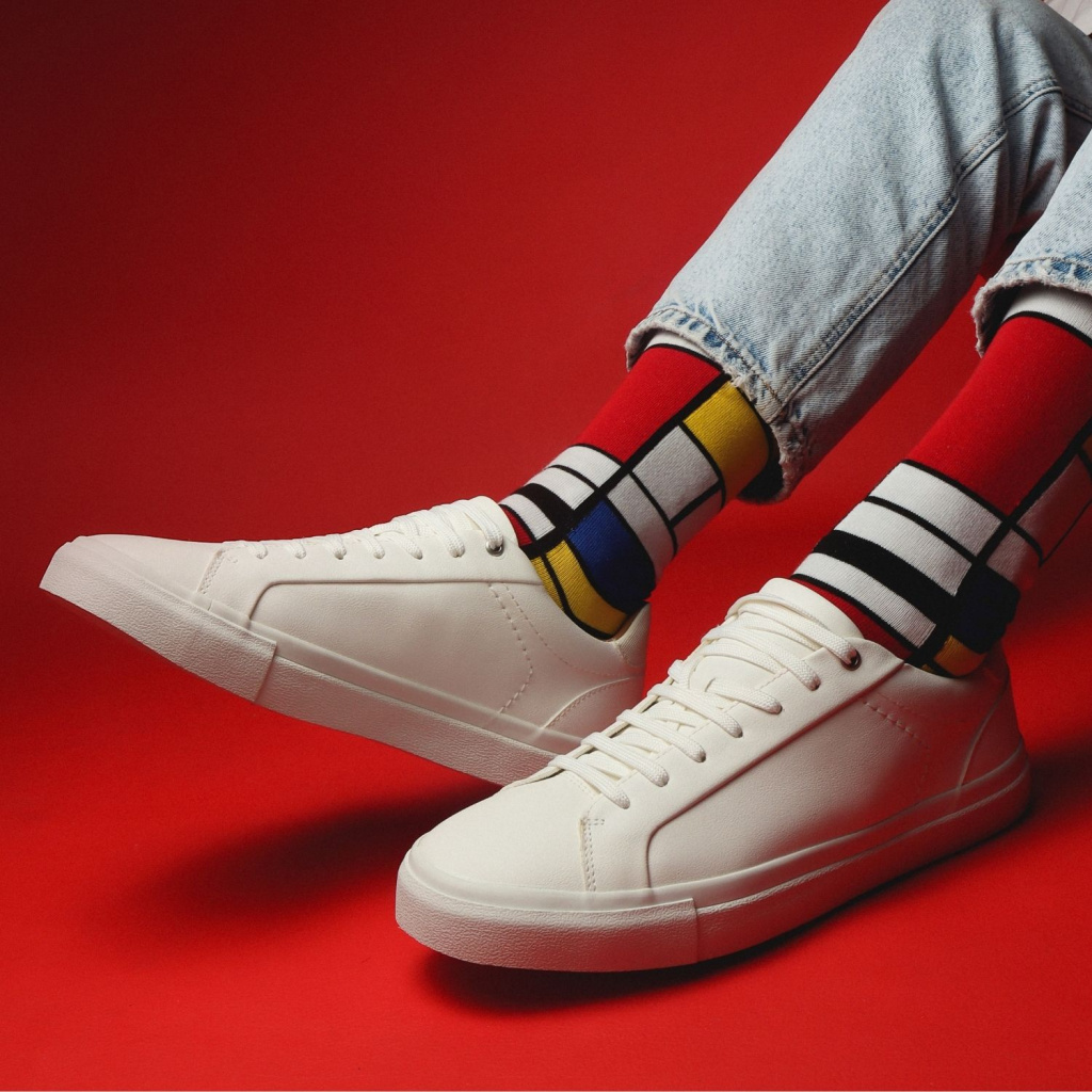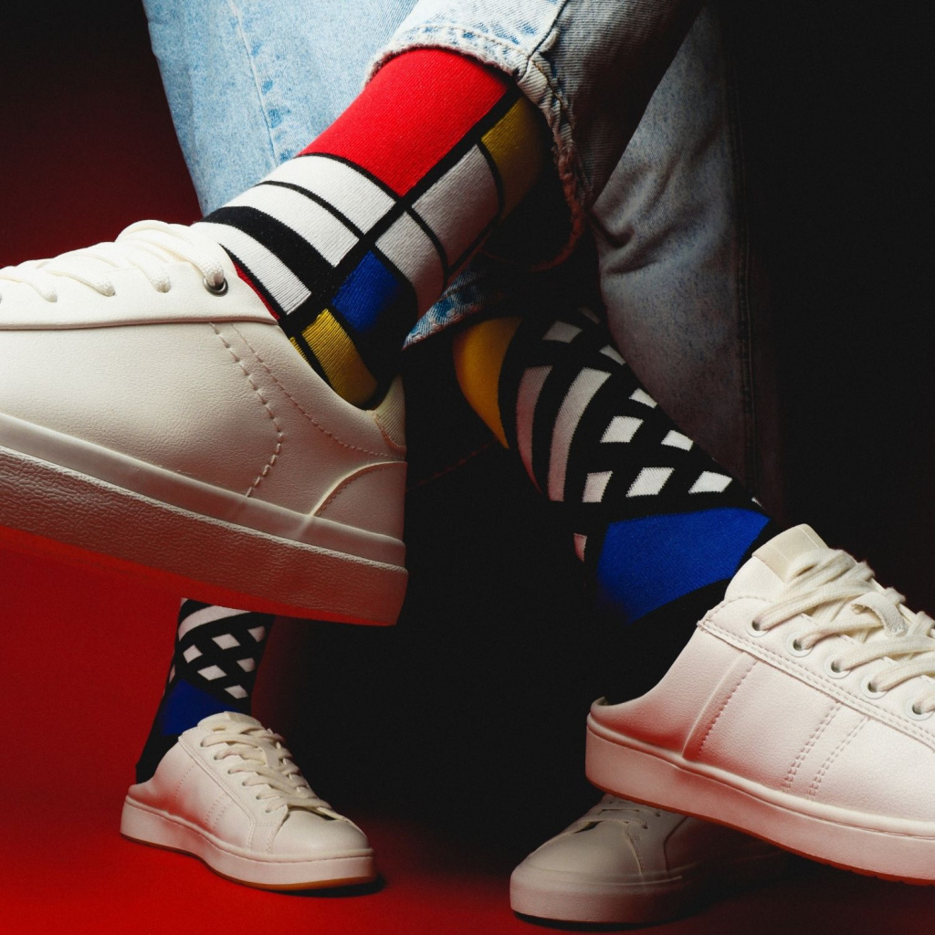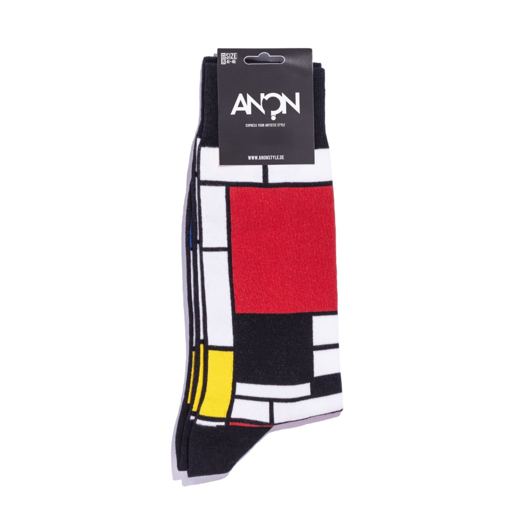 Ponožky z kolekce D STIJL COLLECTION 1917 od značky ANON vycházejí z díla avantgardního umělce Pieta Mondriana, jehož styl definují přímky, pravé úhly a primární barvy. Výsledkem je dynamická a harmonická kompozice na každém kroku.