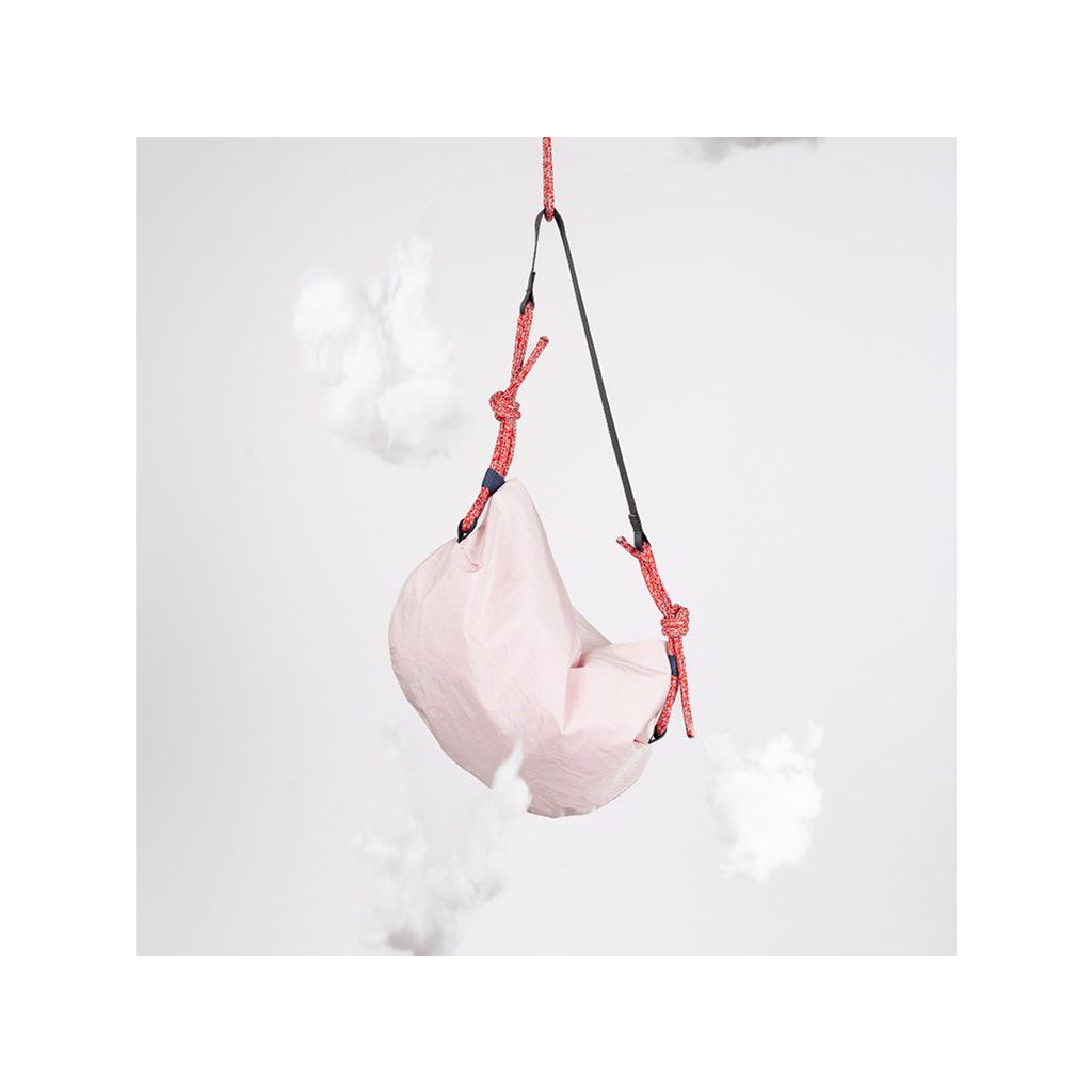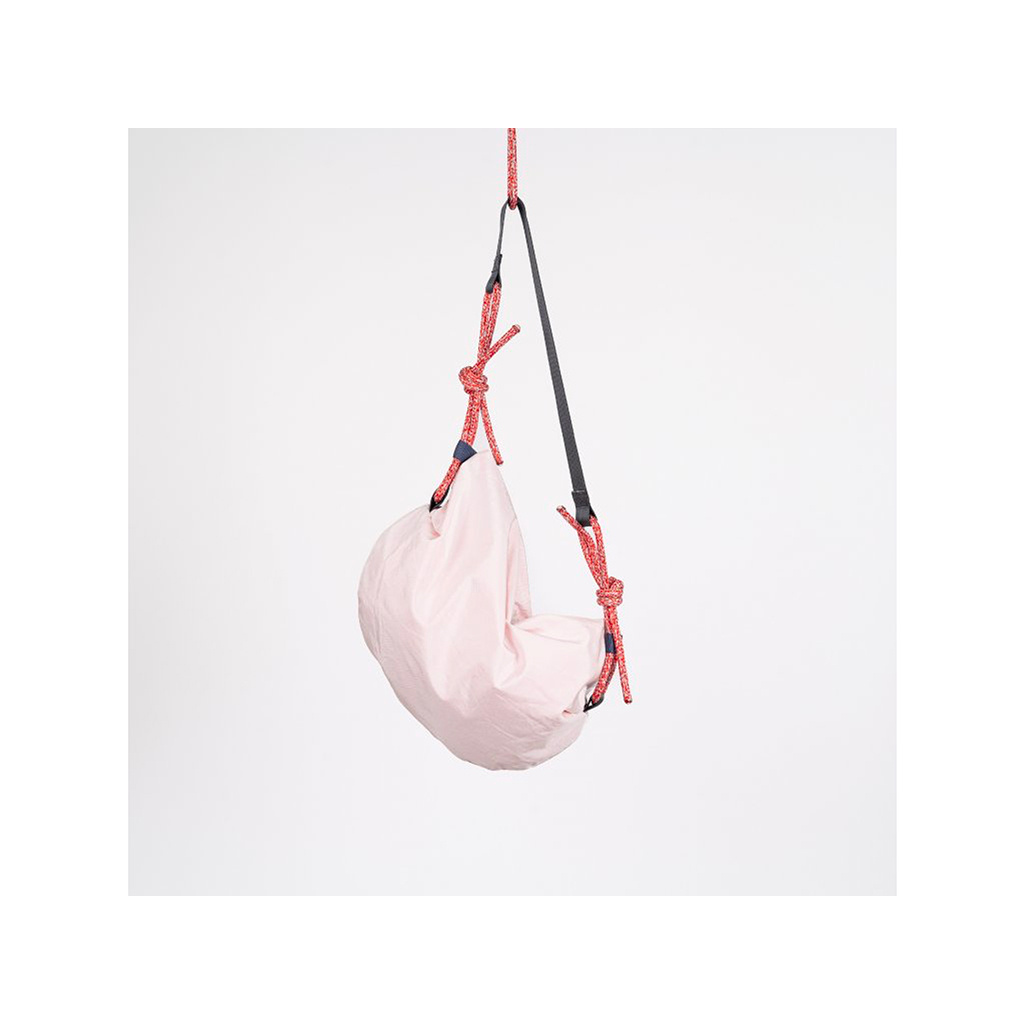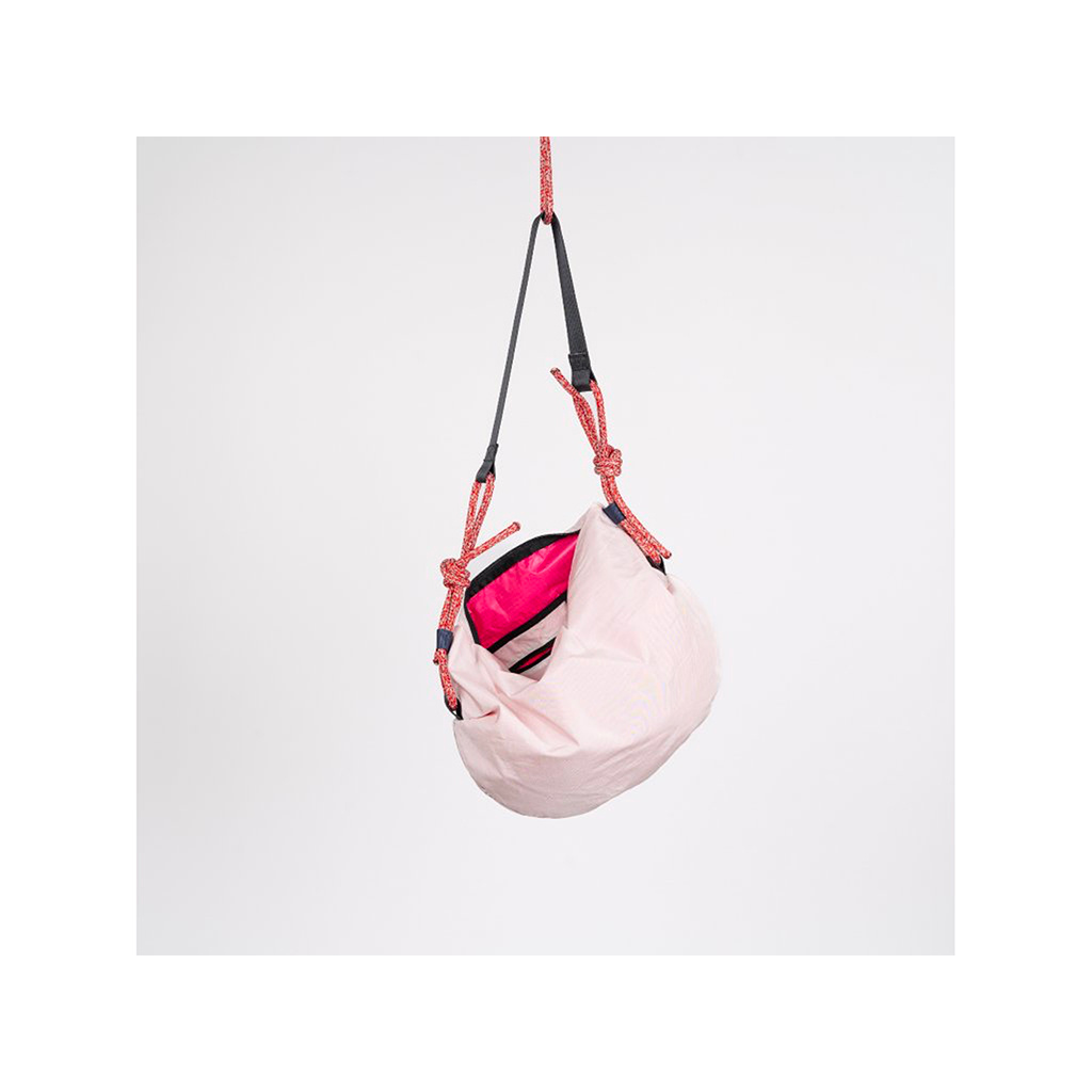 A versatile and ultralight bag crafted from 100% upcycled airbags by Airbō. Its smart circular cut allows it to expand and contract based on your needs. Each piece is unique, featuring colorful parachute lining and rope straps from repurposed climbing gear.