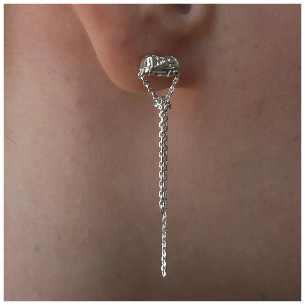 Jan Ear Glyphs M2 Earrings by Ondřej Stára are sold as a pair. Both pieces are crafted to naturally complement each other and create a balanced composition. The chain lengths are carefully designed to prevent tangling during wear while maintaining a clean silhouette. We recommend wearing the signature tube element horizontally to highlight its linear detail. Insert the fastening firmly to prevent the piece from rotating unintentionally.
