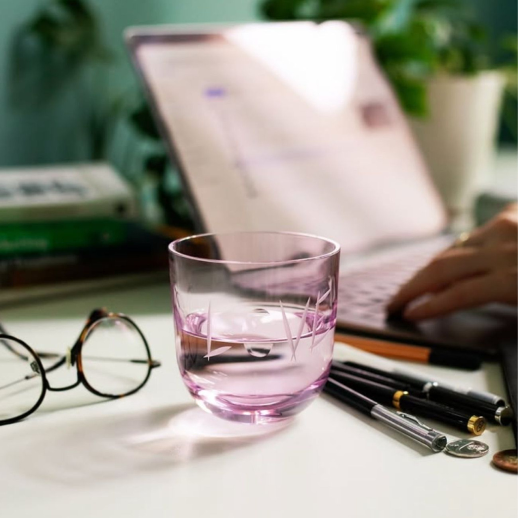 The hand-cut crystal glass, glowing in a subtle pink color, embodies a timeless balance of tradition and contemporary design. With a capacity of 200 ml, it is perfect for everyday use or as a collectible design object that carries a rich cultural legacy.
