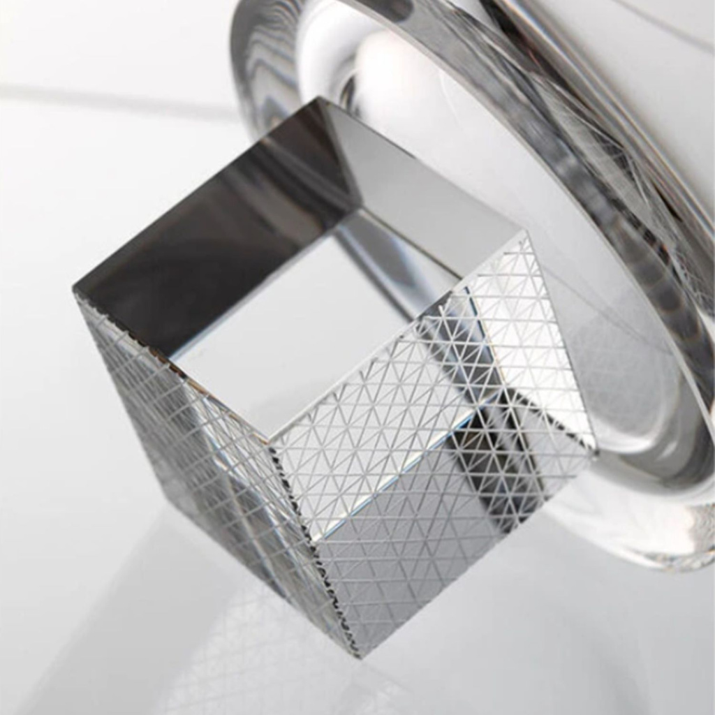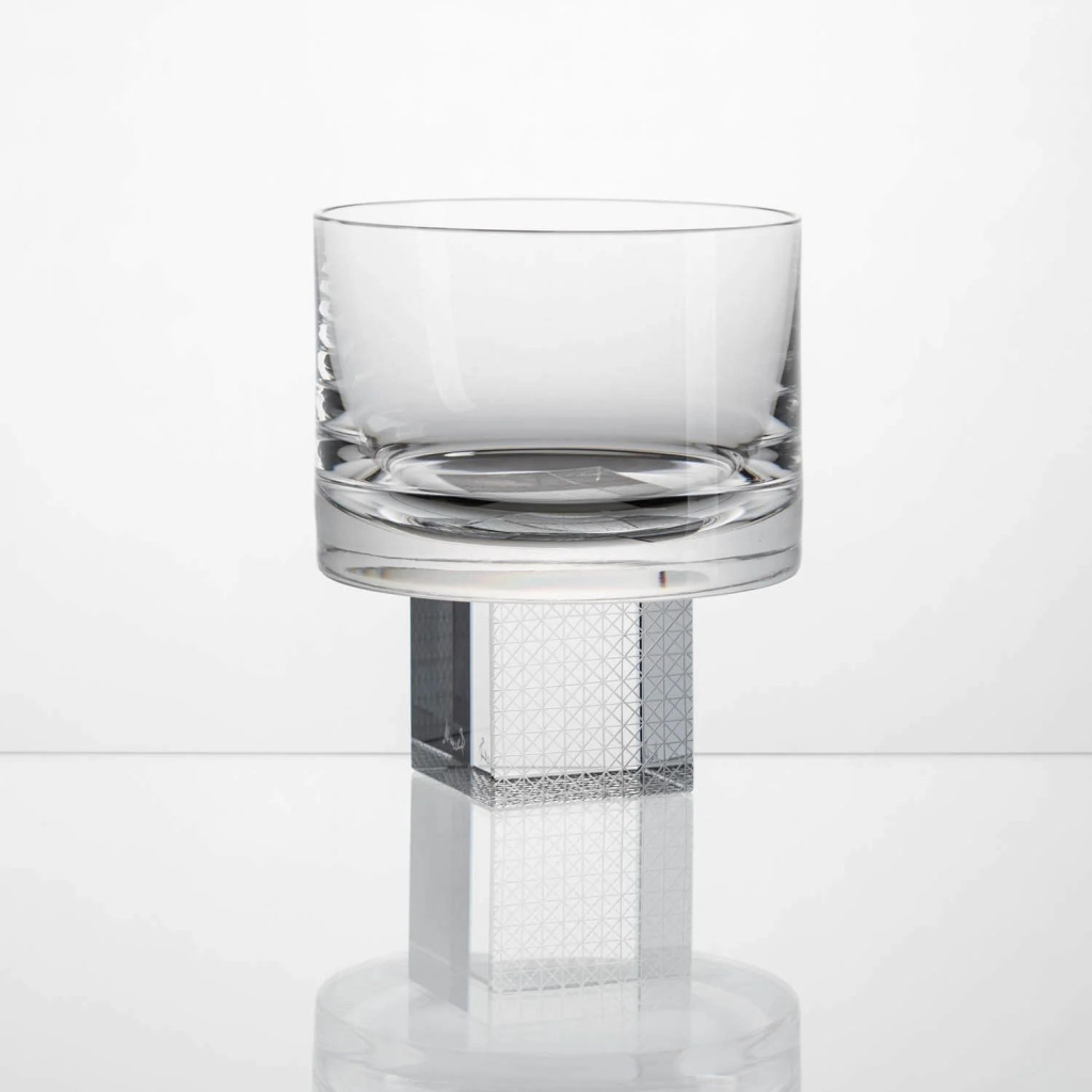 Each glass is carefully blown and engraved by hand in the Czech Republic, combining a strong, massive base with light-reflective surfaces that highlight the craftsmanship within. The result is a functional object that speaks to architectural sensibilities and contemporary ritual alike.
