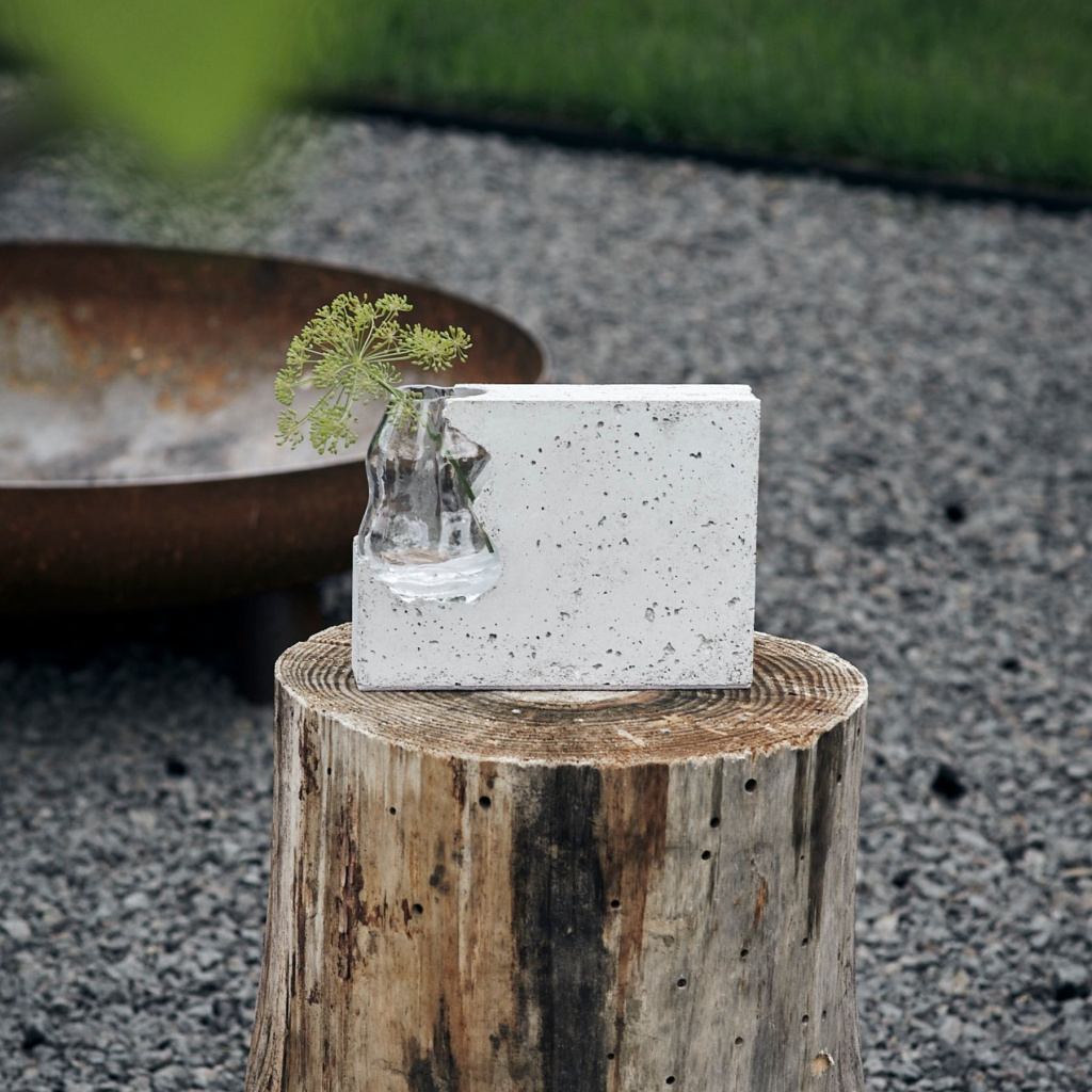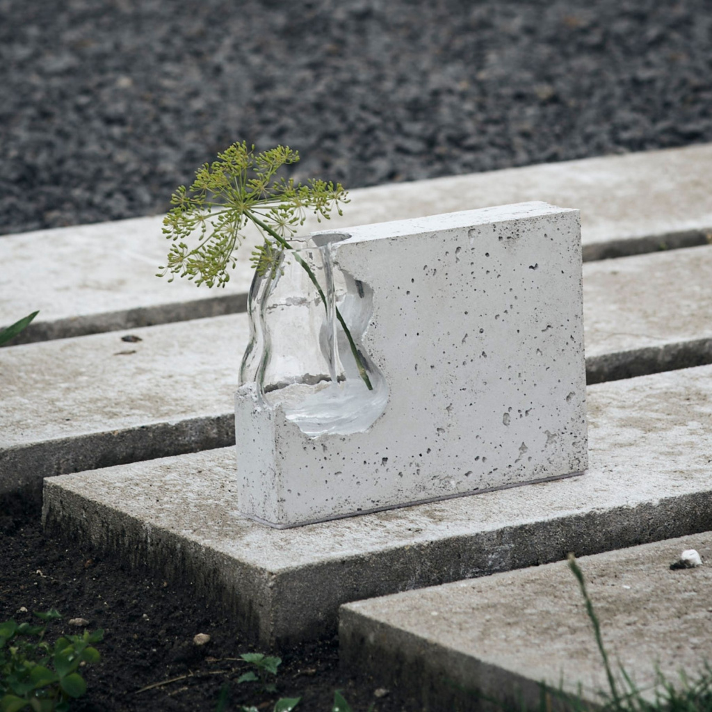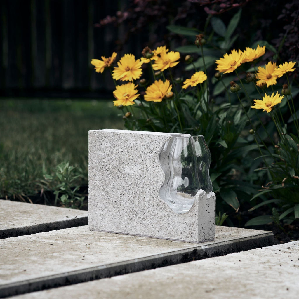 The Vlnkova vase is an original art object created by Petra Švejdarová of the Czech design label PRASKLO. It unites the strength of concrete with the fragility and elegance of reclaimed glass, forming a dynamic silhouette inspired by natural curves.