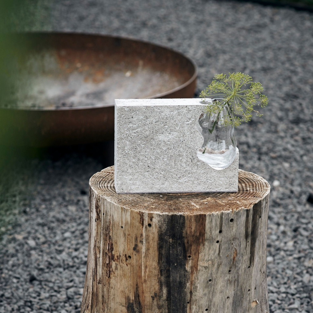 Their creations are rooted in a fascination with stone as a primordial natural material — its structure, its forms and its transformative potential. The upcycled glass, sometimes sourced from demolished buildings, gains new functional and aesthetic qualities when combined with concrete.