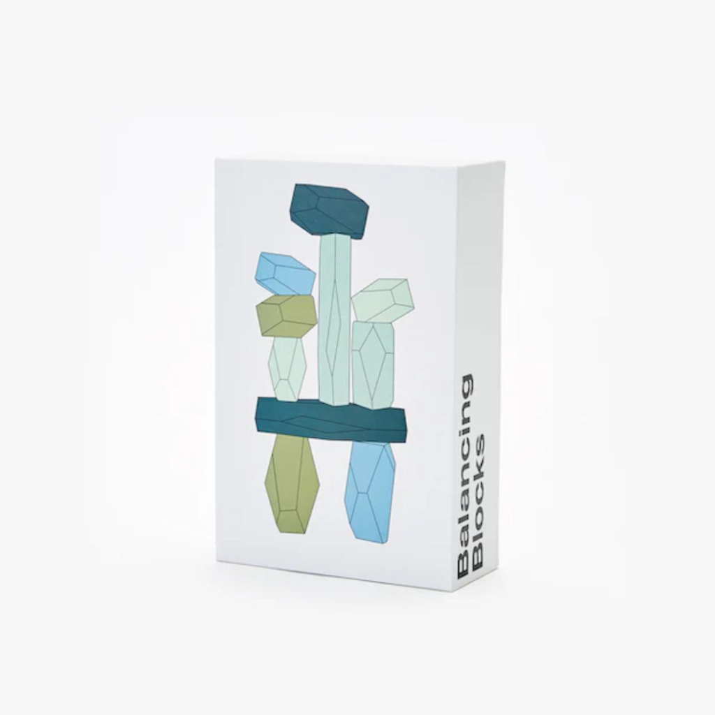Balance faceted, stone-like shapes to build your own design objects. Each set includes 10 blocks made of solid oak, finished with water-based paint in calm ocean tones. Perfect as a mindful play tool, creative décor, or a thoughtful gift for lovers of minimalist Scandinavian-style design.
