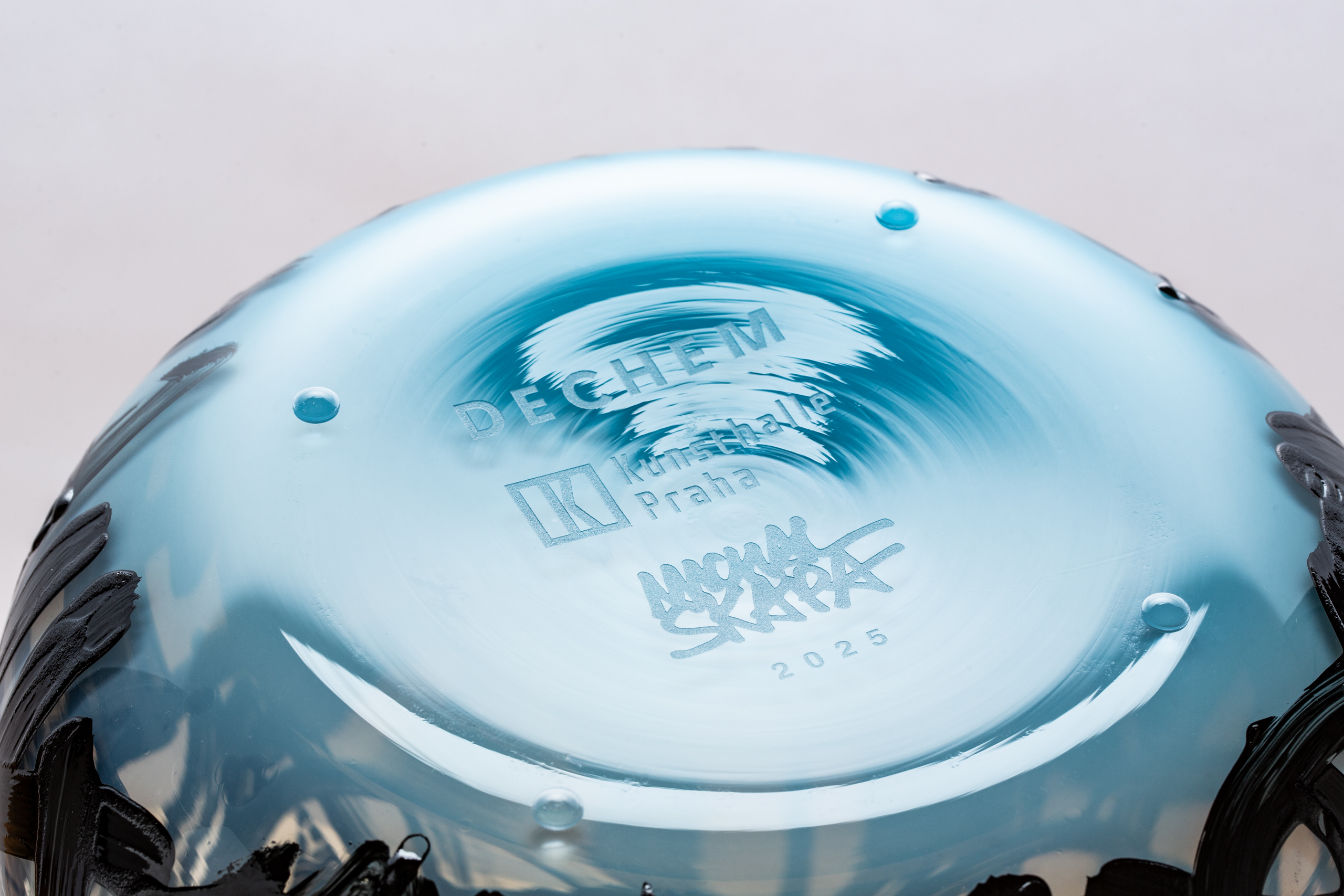 The iconic Bandaska shape by DECHEM Studio was transformed into a painter’s canvas, where Michal Škapa applied his unique visual alphabet. The result is a fusion of tradition and contemporary art, turning the vase into a collector’s object with unmistakable energy.