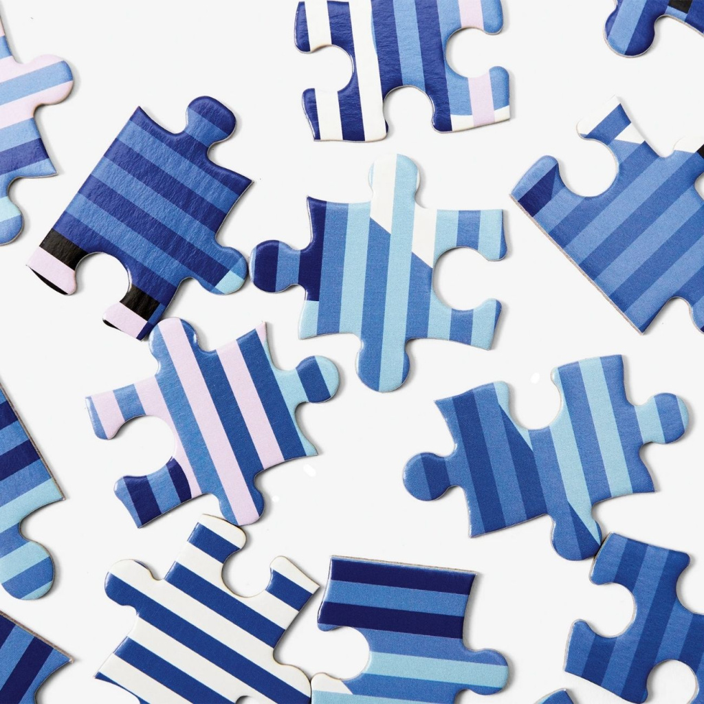 Pattern Puzzle je unikátní puzzle vytvořené módní návrhářkou Ellen Van Dusen, známou svým odvážným přístupem k barvám, vzorům a kompozici. Pod značkou Dusen Dusen vytváří textilie a kolekce, které se staly ikonickými pro svůj vizuální optimismus a výtvarnou hravost – a stejný duch se promítá i do její kolekce puzzlí.