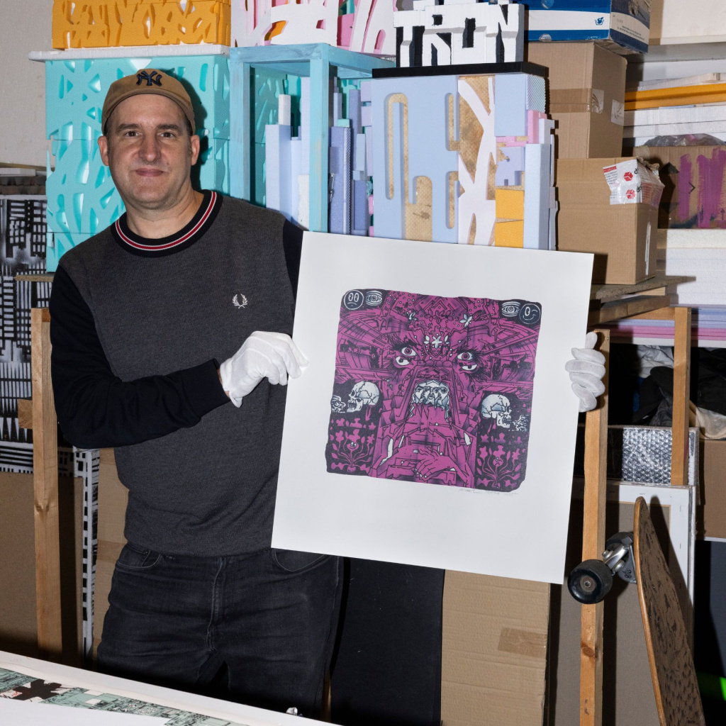 Multiface je jednou ze dvou limitovaných edic, které Michal Škapa vytvořil exkluzivně pro Kunsthalle Praha Design Shop. Grafika představuje intuitivní a lehce psychedelickou vizi starodávného monumentu s multiplikovanou tváří. Nad ústřední postavou se vznáší duch propojený s galaxií a vesmírem, zatímco okolní prvky odkazují na pozitivní i negativní energie, které nás formují.