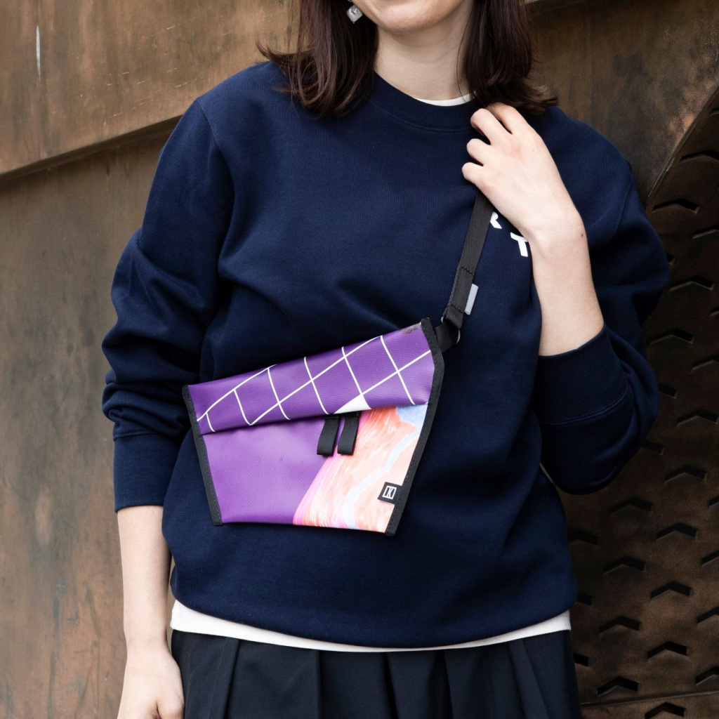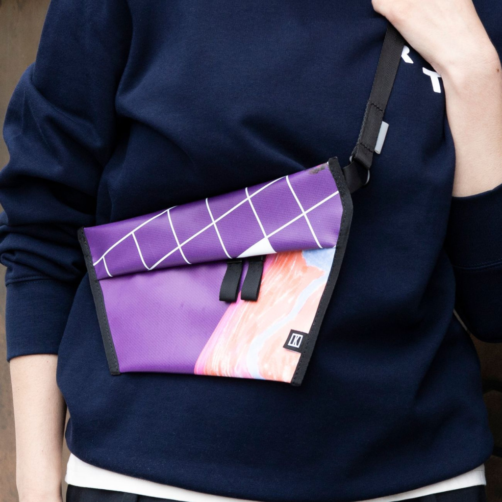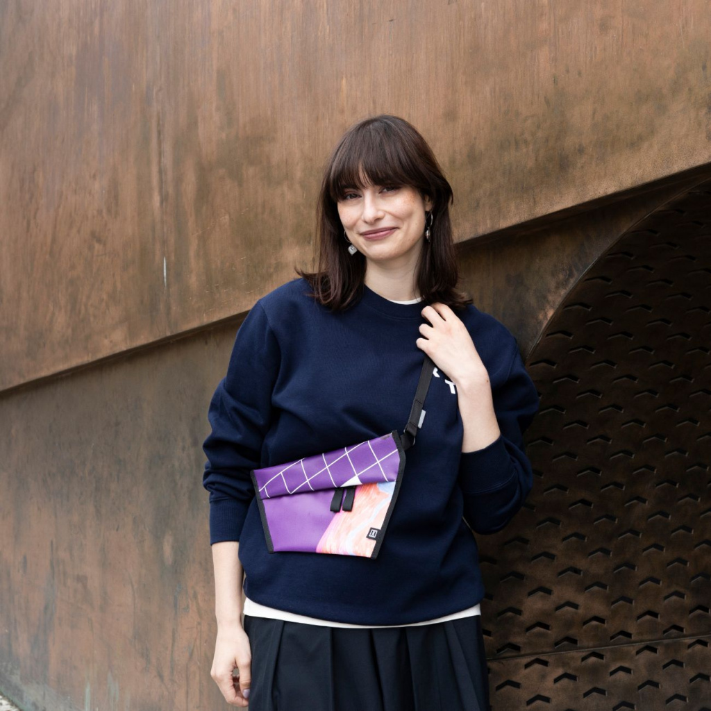 Každý kus je ručně vyroben v České republice a je naprosto jedinečný. Upcyklovaná PVC plachta je odolná, lehce omyvatelná a voděodolná. Minimalistický střih, nastavitelný popruh a chytré členění z ní dělají funkční městský doplněk s jasným postojem k udržitelnosti.