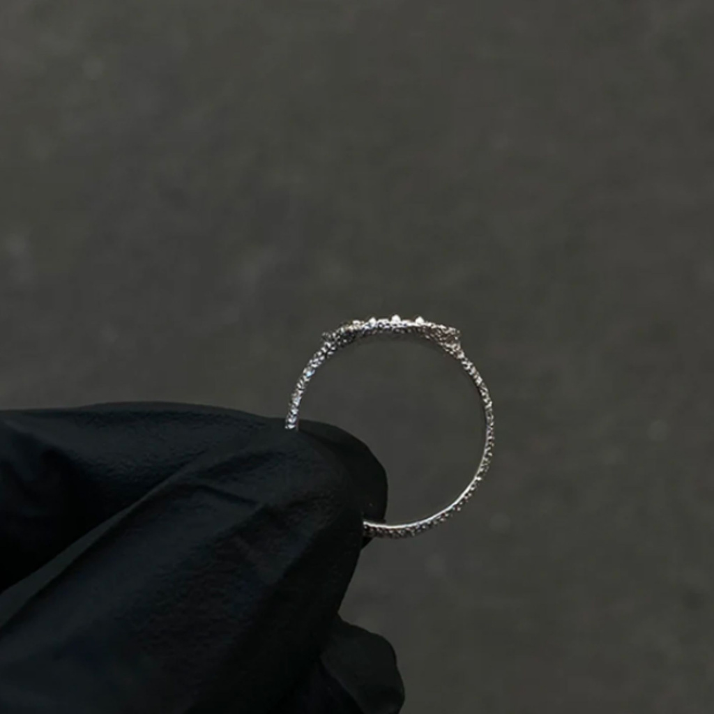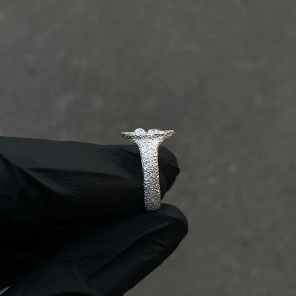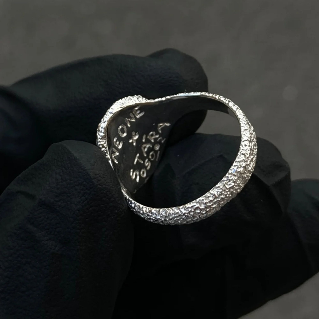 Ručně vyráběný prsten ze stříbra Ag je dostupný ve dvou velikostech a potěší všechny, kteří hledají jedinečný doplněk s nadhledem. Doporučujeme sundávat při sprchování, mytí nádobí nebo sportování, aby si šperk uchoval svůj vzhled a lesk.