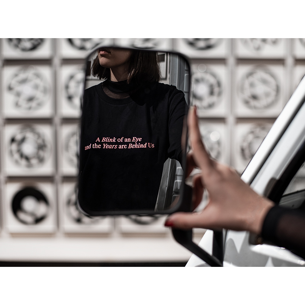Čistý design, unisexový střih a kvalitní materiál – oblíbené triko z výstavy Gregora Hildebrandta A Blink of an Eye and the Years are Behind Us nabízíme i po skončení výstavy.